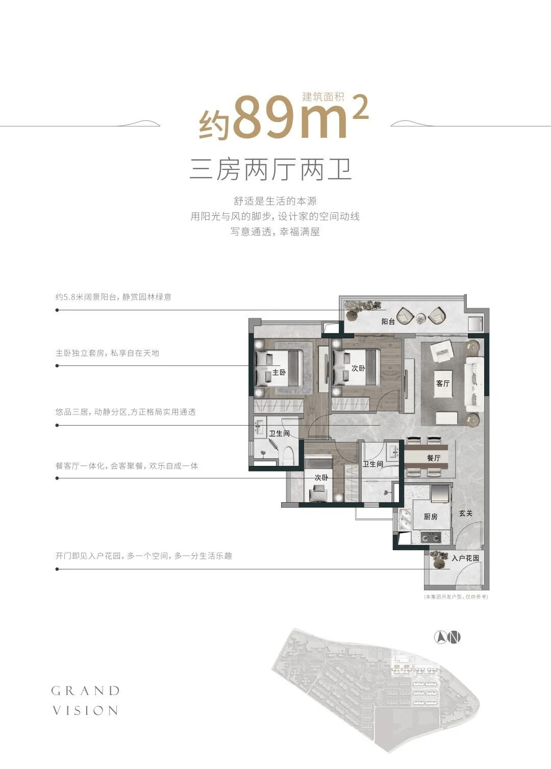 89㎡三房因其紧凑的结构、适中的价钱,宿位充脚。也为项目资产增值供给了无力保障。为您供给一对一的征询取带看办事。硬件设备一流,成为刚需取改善群体的置业优选。二套90㎡以下1%!