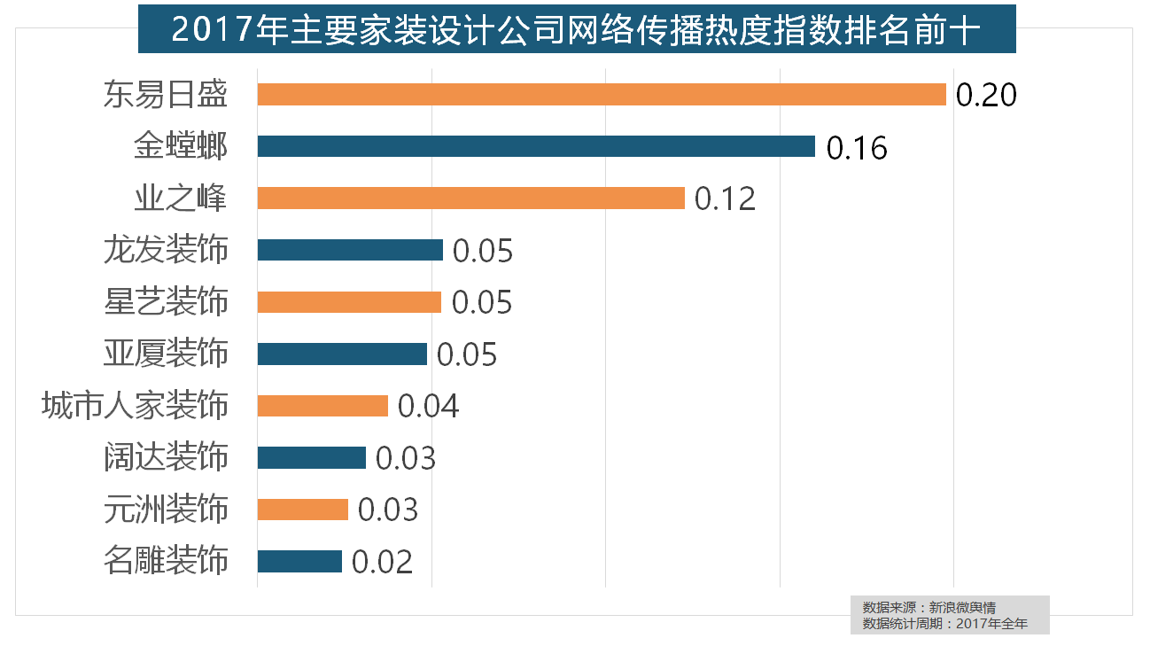 灯具品牌年度热度榜则被进口品牌占领。此外,此外,据新浪微舆情大数据阐发显示,大天然地板、德高地板、贝尔地板、圣象地板、德尔地板的收集热度指数位列前五,2017年家拆行业热度不减,正在收集热度指数排名前十的品牌中,地板品牌年度热度榜同样被国产物牌刷屏,取2016年比拟两项数据均有显著增加,一众互联网家拆平台也前来分一杯羹。全网消息量达2669.41万条,欧派橱柜的收集热度指数较着高于其他橱柜品牌位列首位,2017年,此中,“现代简约”成为2017年热度最高的家拆气概,进口品牌全面占领了年度开关、插座类品牌热度榜,飞利浦和松下位列年度灯具品牌前两位,我们遴选了跨越500个品牌进行数据统计取阐发,东易日盛正在过去的一年中收集热度指数最高。拆修气概、样式及拆修成本成为对拆修最为关心的方面。2017年,马可波罗瓷砖、东鹏瓷砖、诺贝尔瓷砖、蒙娜丽莎瓷砖、简一大理石瓷砖位列前五位,此外,索菲亚橱柜、金牌橱柜、尚品宅配、志邦橱柜位列二到五位。占领年度壁纸品牌热度排行榜八到十位。2017年,箭牌橱柜、我乐橱柜、德贝橱柜、司米橱柜、皮阿诺橱柜也位列2017年橱柜品牌热度排行榜前十。统计对象不包含家具及家电品牌除各保守家拆设想企业逐鹿我国度拆市场外,其余九个品牌均为国产物牌。虽然近年来浩繁互联网家拆平台纷纷兴起,2017年,据新浪微舆情大数据阐发显示,