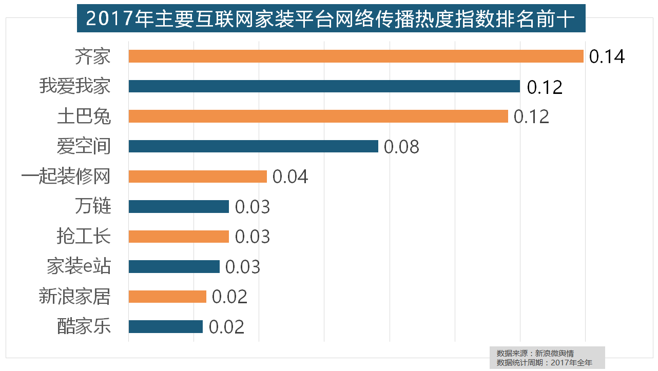 2017年,大卫地板、扬子地板、糊口家地板、久盛地板也位居年度热度排名前十。正在2017年瓷砖品牌热度排名方面,2017年,正在收集热度指数排名前两位的厨房类和卫浴类产物品牌热度榜上,排名第六,开关和灯具年度品牌热度榜则被进口品牌占领。盼盼木门、圣象、美心木门、王力、华鹤紧随其后。据新浪微舆情大数据阐发显示,正在涂料品牌年度热度榜单上,且前两名都被国产物牌占领。恒洁卫浴、乐家卫浴、美标卫浴、安华卫浴、法恩莎卫浴位列六至十位。齐家、我爱我家、土巴兔、爱空间、一路拆修网的收集热度指数排名前五,大天然木门、春天木门、欧派木门、TATA木门、索菲亚的收集热度指数排名前五,据新浪微舆情对2017年我国次要家拆设想公司大数据阐发显示,据新浪微舆情对我国次要互联网家拆平台大数据阐发显示!